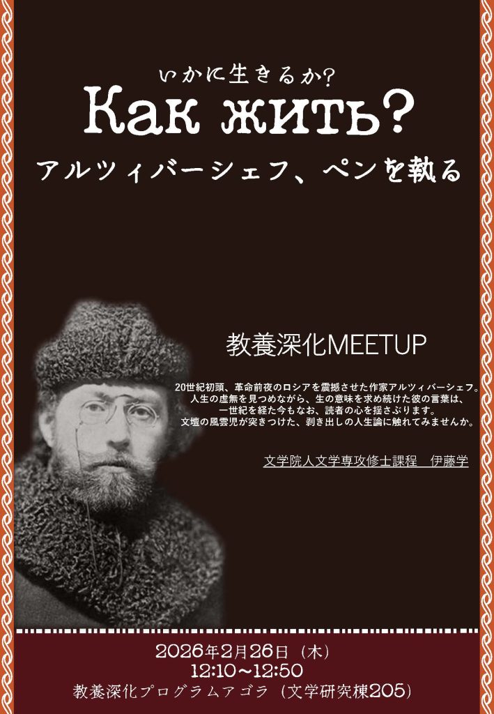 【教養深化MEETUP】「Как жить? (いかに生きるか?):アルツィバーシェフ、ペンを執る」を開催します